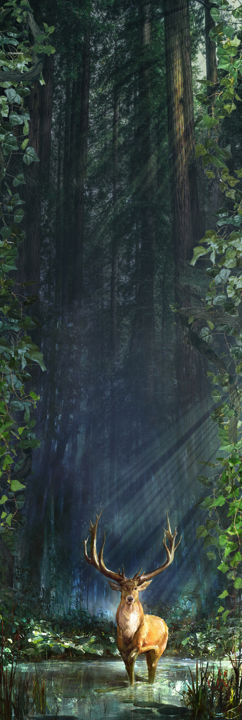 森系背景麋鹿树林免抠素材免费下载 觅元素51yuansu Com